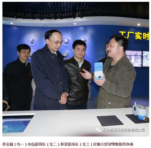 参观时,伍司长详细询问了三川四十年的发展历程,对三川与时俱进,积极响应时代智慧发展方向的先进理念表示肯定,伍司长说:三川智慧水表智能化的研发水平是具有国际领先地位的,新型智慧城市的发展,带动了企业相关产业链的配套发展,三川智慧率先开展窄带物联网水表的研发,将给当地的智慧产业发展起到巨大助力推进作用,必将打造成鹰潭的新型智能化亮点企业。最后,伍浩副司长希望企业能继续加快创新步伐,为社会发展做出更多贡献,国家发改委将持续关注和支持三川智慧的发展。