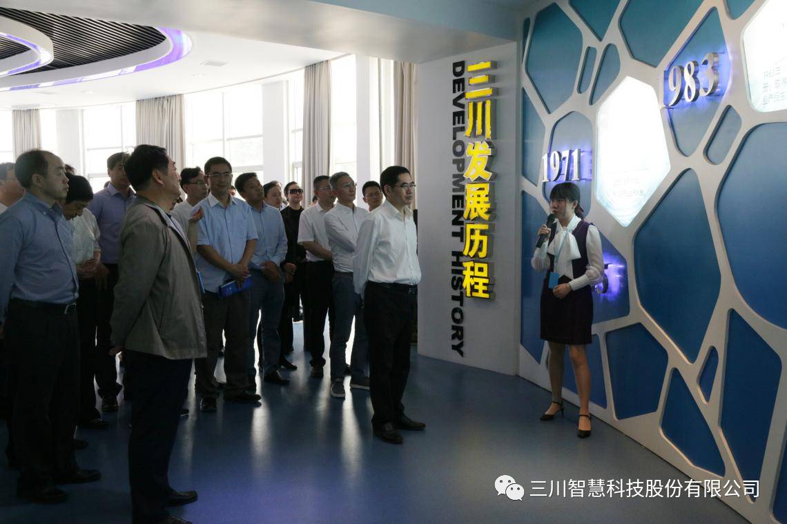 发布时间:2017-05-042017年5月3日,江西省政协副主席、民进江西省委员会主委汤建人,省政协常委、省政协教科文卫体主任委员龚林儿,省政协常委、省政协副秘书长徐良平等一行莅临三川智慧调研,鹰潭市政协主席戴春英、鹰潭市高新区党工委书记李卫国等领导陪同调研。三川智慧董事长李建林接待了汤主席一行,对汤主席一行莅临三川智慧表示热烈欢迎并陪同参观公司展厅。