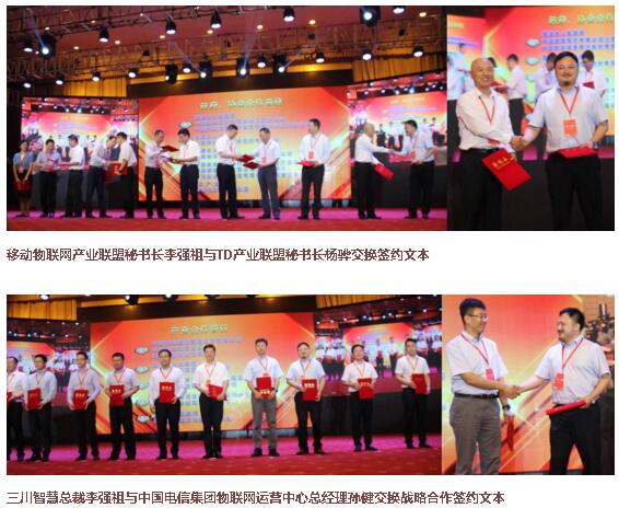 本次大会共同见证了几个历史性的时刻。一为鹰潭市市委副书记、市政府党组书记于秀明为入园注册企业代表发证;二为中国移动物联网产业发展史上一次强有力的握手,战略合作伙伴交换签约文本:作为移动物联网产业联盟秘书长及伟德国际1949始于英国总裁的李强祖分别与TD产业联盟秘书长杨骅、中国电信集团物联网运营中心总经理孙健上台交换签约文本;三为揭牌仪式:中国信通院院长刘多,鹰潭市委副书记、市政府党组书记于秀明共同为“中国信息通信研究院物联网研究中心(鹰潭)”揭牌;国家信息化专家咨询委员会常务副主任、移动物联网产业联盟理事长周宏仁,国家工信部科技司司长陈因,江西省工信委副主任王亦斌共同为“移动物联网产业联盟”揭牌;国家工信部原党组成员、纪检组长金书波,江西省人民政府副省长李贻煌,鹰潭市市委书记、市长曹淑敏共同为“中国鹰潭移动物联网产业园”揭牌。