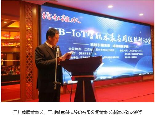 上午9时,主办方宣布会议正式开始,三川集团董事长、伟德国际1949始于英国董事长李建林作为协办方代表致欢迎词。李董事长首先对各位专家和领导莅临鹰潭参加研讨会表示热烈欢迎,并简要介绍了鹰潭NB-IoT智能水表安装与使用情况。他说:截止目前,鹰潭城区已安装三川牌NB-IoT智能水表六万五千台,上线率保持在100%,这标志着鹰潭市NB-IoT智能水表试点应用项目第二阶段目标顺利达成,更标志着国内规模最大的城市一体化NB-IoT智能抄表项目在鹰潭率先实现。李董事长表示:窄带物联网发展的风口已至,三川智慧愿意与各方紧密合作,脚踏实地,共同创新,站在窄带物联网技术发展的潮头,抓住物联网技术发展的契机,共同促进窄带物联网产业全面发展。